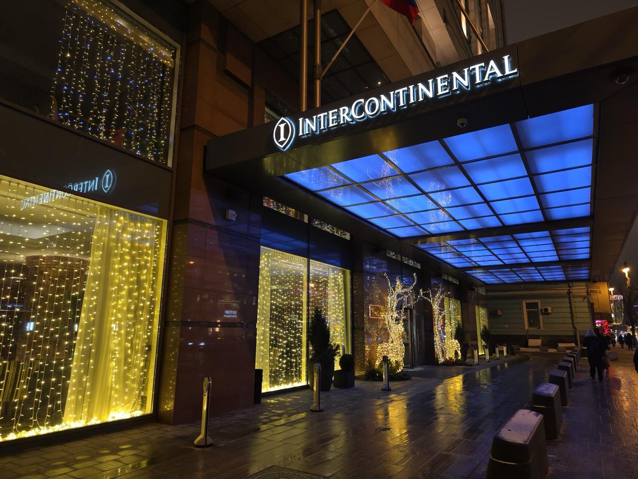 Оформление Intercontinental в Москве стало примером того, как свет может работать на имидж бренда. Фасад сразу привлекает внимание туристов и жителей города, создаёт атмосферу торжества и подчёркивает высокий уровень гостиницы.