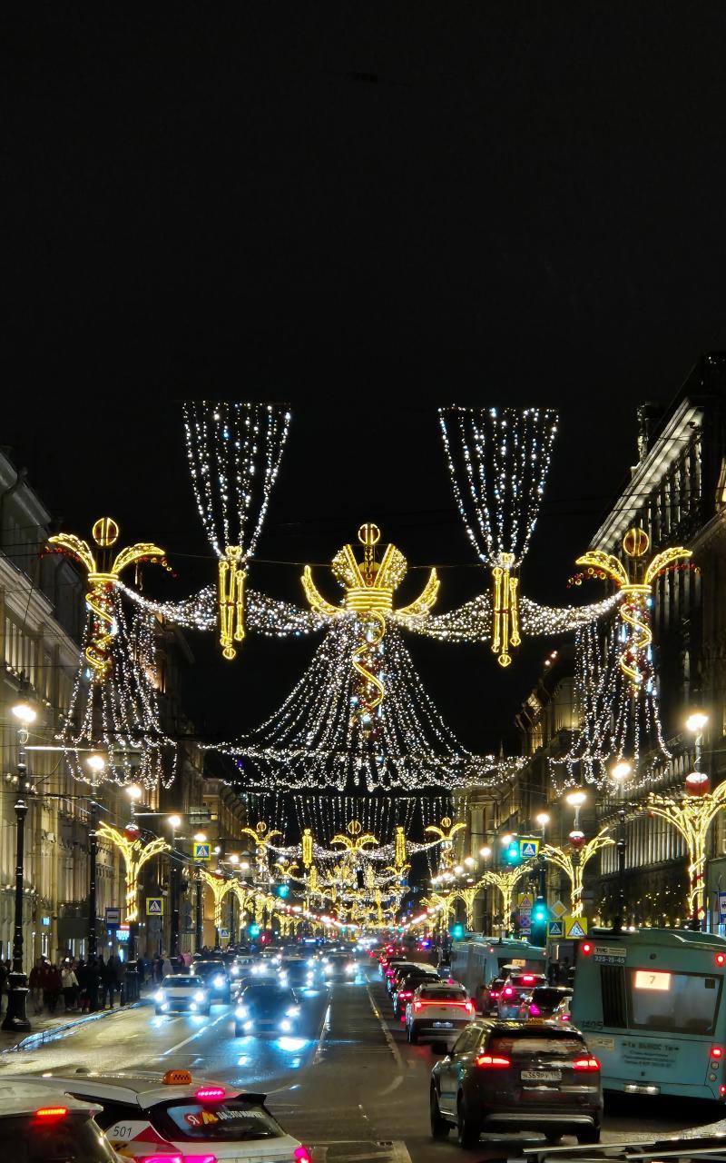 Для монтажа использованы световые фигуры с тёплым белым свечением и гирлянда-занавес с микросветодиодами. Конструкции закреплены на опорах освещения, обеспечивая надёжность и безопасность. Тёплый оттенок света выбран для создания уютного и праздничного восприятия без излишней яркости.