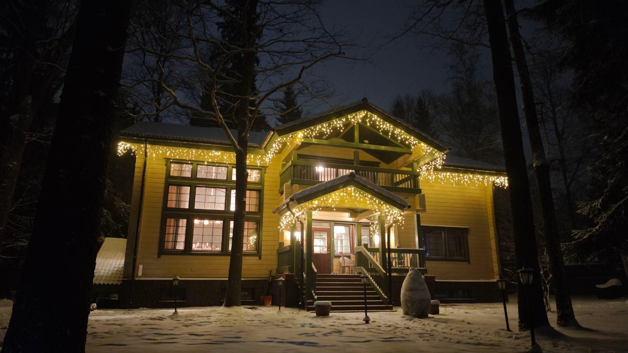 Главная идея — объединить дом и участок в единую световую композицию. Тёплая бахрома создаёт уютное «домашнее» настроение, а холодная подсветка ели добавляет зимней свежести и контраста. Всё решение выдержано в естественной палитре — без излишней яркости, с акцентом на мягкое сияние.