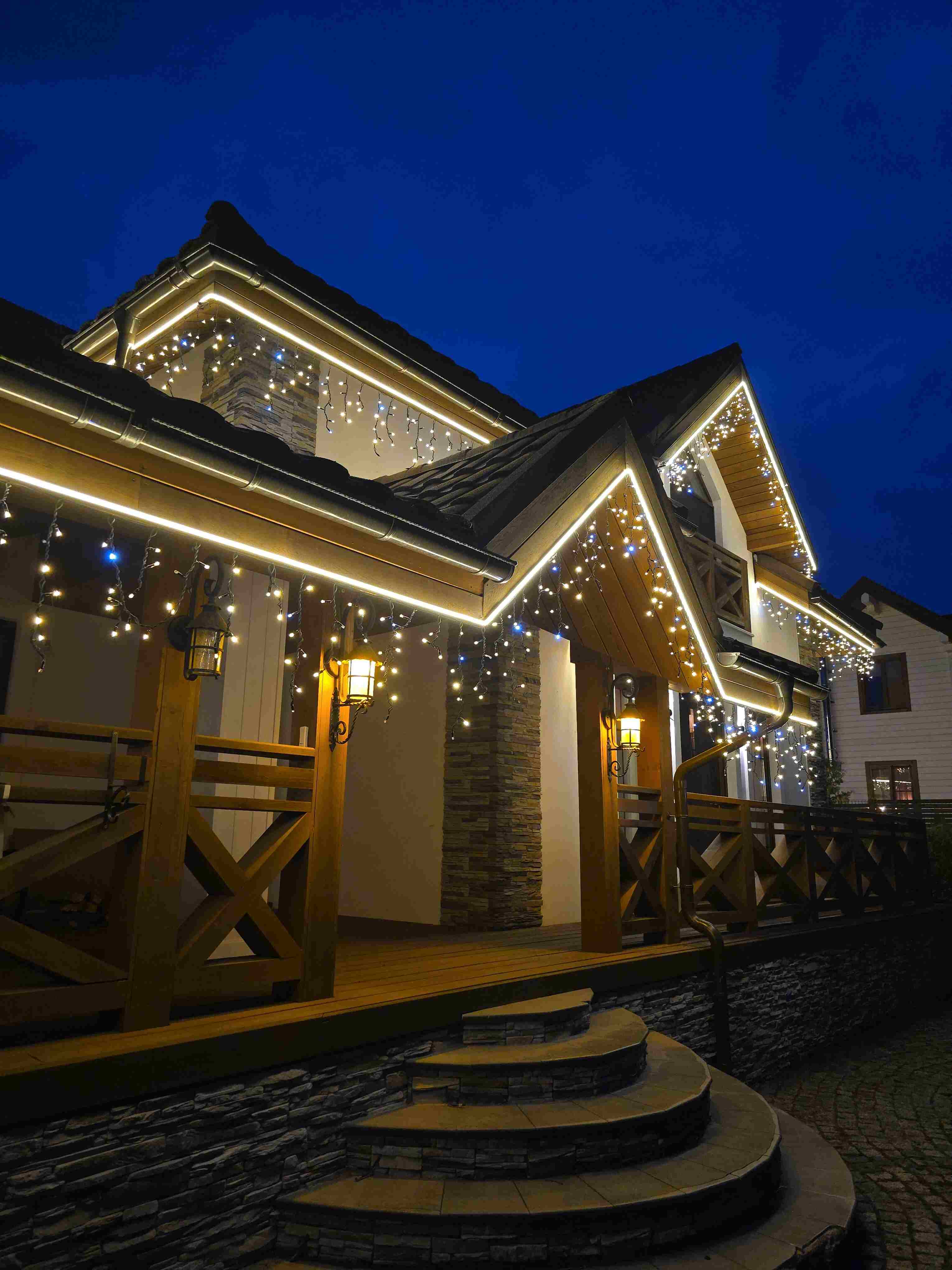 Согласовали даты и выполнили работы за 2 дня. Смонтировали комбинированную подсветку всех зон, аккуратно скрыли трассы и подключения. Настроили управление через мобильное приложение — теперь заказчик включает и выключает свет, а также переключает сценарии прямо с телефона. Можно включать неон отдельно, бахрому отдельно или всё вместе, а также управлять по зонам. Клиент остался доволен результатом.