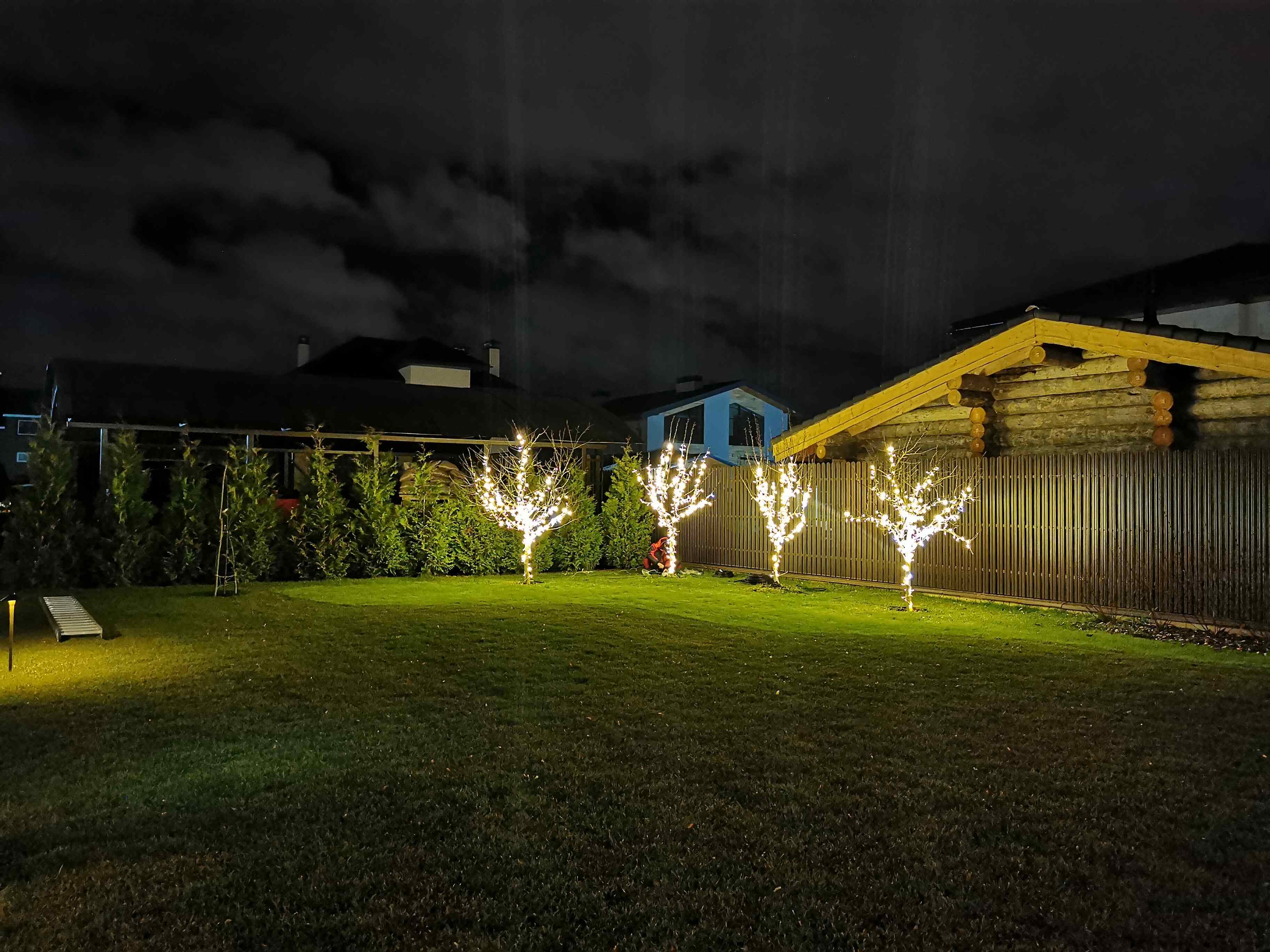 Все работы были выполнены за один день: в проекте участвовали один монтажник и один электрик. Решение получилось аккуратным, практичным и в то же время очень тёплым — теперь участок вечером выглядит нарядно и гостеприимно.