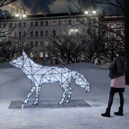 Полигональная скульптура «Человек» 3D GR 671, 3,36×1,84×1,75 м, IP65, золотой