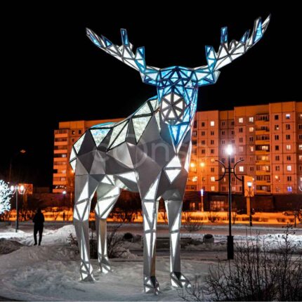 Световая полигональная фигура «Золотой олень» 4×3,16 м, IP65, золотое свечение