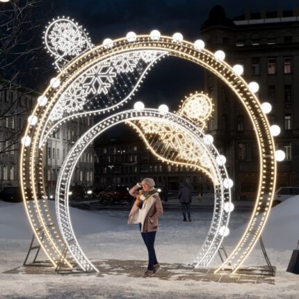 Новогодняя световая арка «Снегурочка», 3,8×3,3×1,8 м, IP65, тёплый/холодный свет