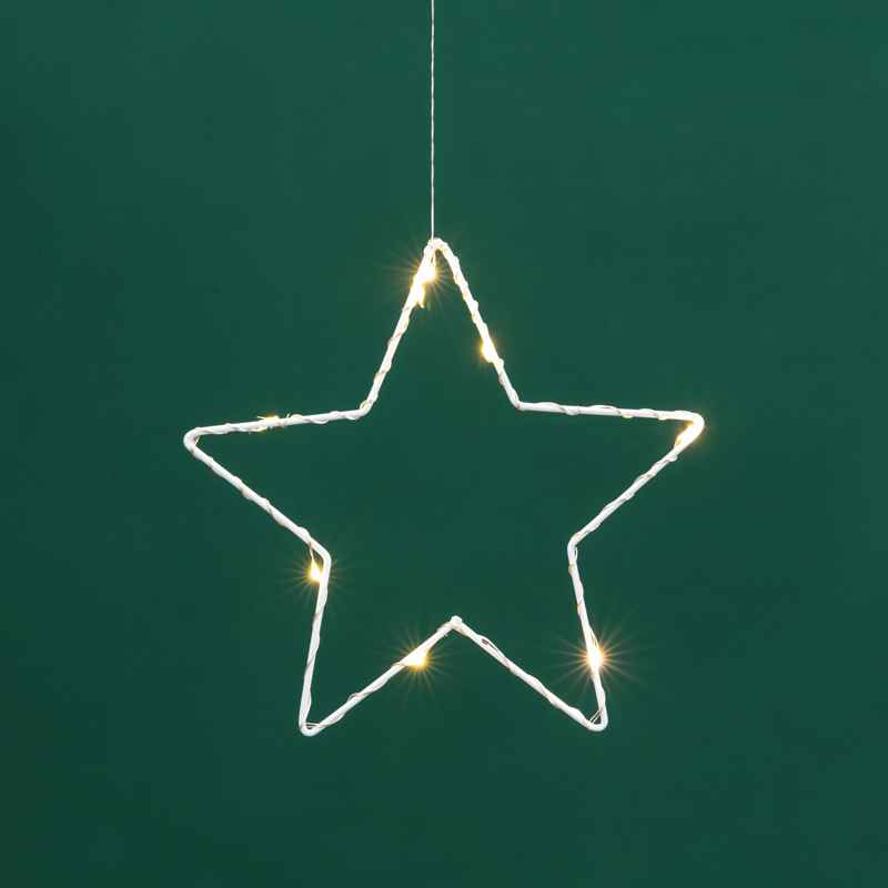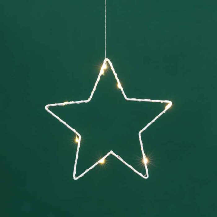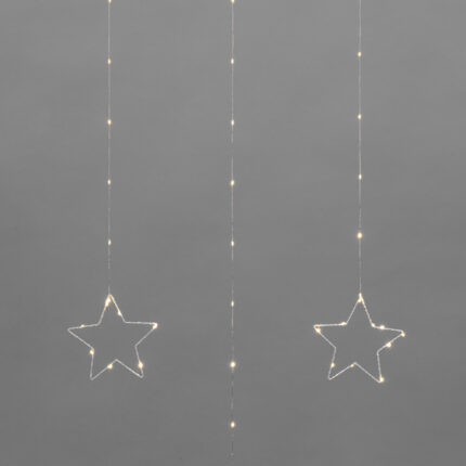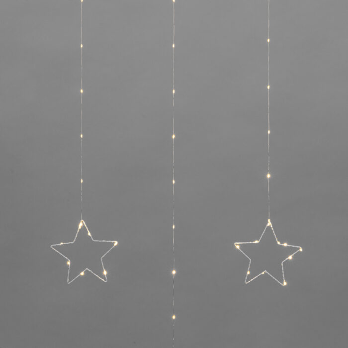 Серебристый металлический провод остаётся почти незаметным, поэтому звёзды выглядят так, будто парят в воздухе.