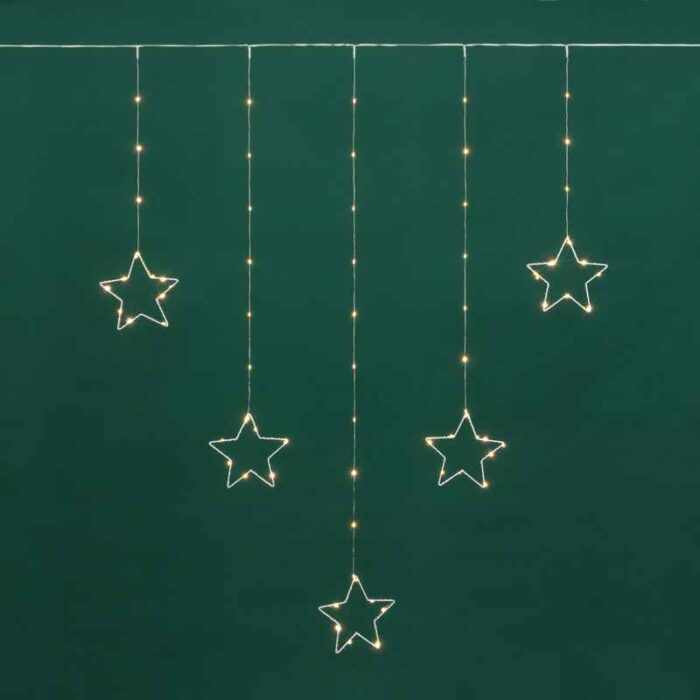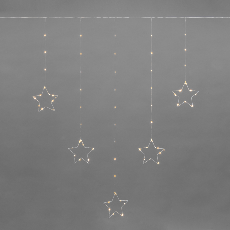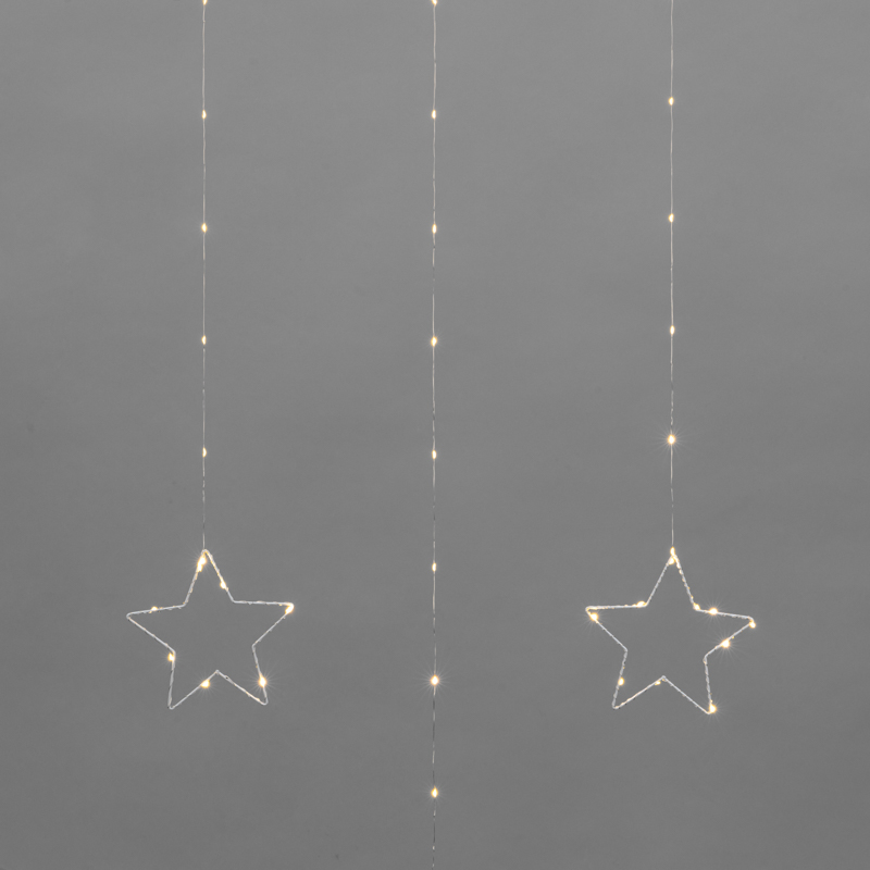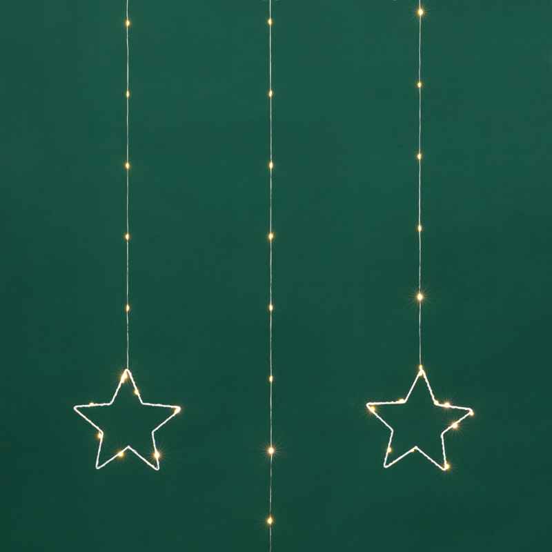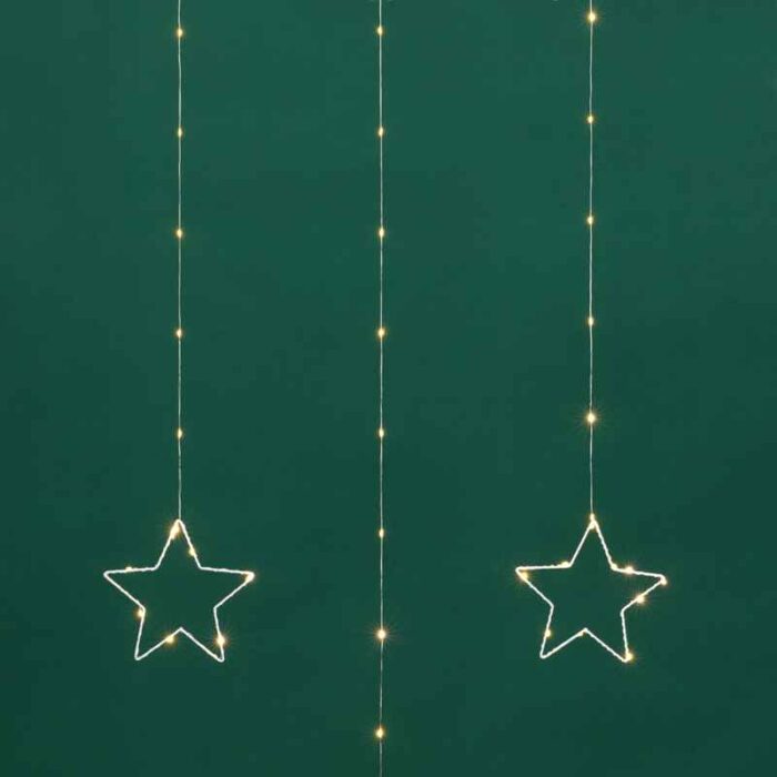 Гирлянда-занавес из тонкой «росы» со звёздными фигурами — это не просто подсветка, а декоративный элемент, который сам по себе создаёт настроение. Благодаря мягкому тёплому свечению она подходит для тех, кто ценит уют, элегантность и праздничную гармонию.