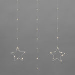 Гирлянда Занавес из росы со Звёздами 1.5х1.15 м Тепло-Белый с Динамикой, 230В, 156 LED, Провод Серебристый Металл, IP20