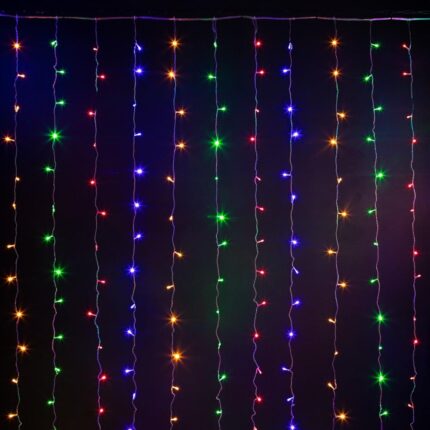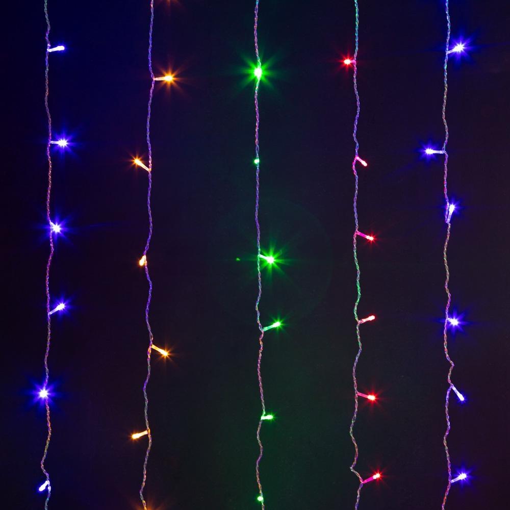 Гирлянда Занавес 1.5х1.5 м Мультиколор с Мерцанием, 220В, 160 LED, Провод Прозрачный ПВХ, IP20