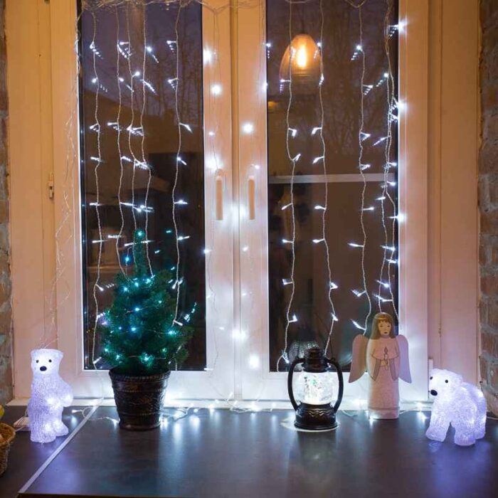 Белый свет остаётся одним из самых универсальных вариантов для оформления. Он символизирует чистоту, свежесть и элегантность. Такая гирлянда одинаково гармонично смотрится в строгом интерьере, в уютной домашней обстановке и в праздничных композициях. Белое свечение не перегружает декор и прекрасно комбинируется с другими оттенками — золотым, синим, красным или зелёным.