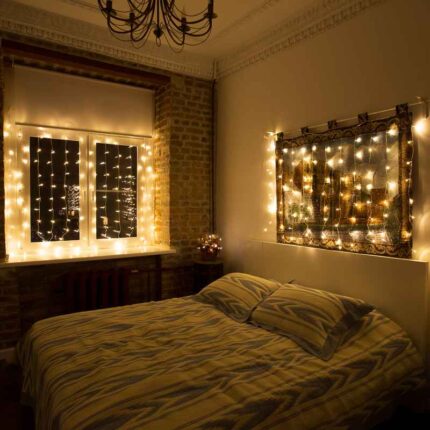Тёплый белый свет этой гирлянды-занавеса помогает создать атмосферу домашнего уюта и праздника. Размер 1.5×1 м и компактный формат делают её удобной для декора небольших пространств, а также для выделения акцентных зон в интерьере.