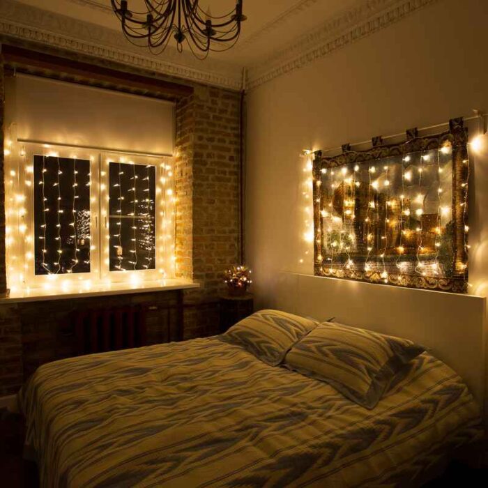 Несмотря на небольшую площадь, занавес выглядит эффектно, особенно при комбинировании с другими гирляндами. Компактный размер позволяет легко размещать гирлянду даже в ограниченном пространстве.