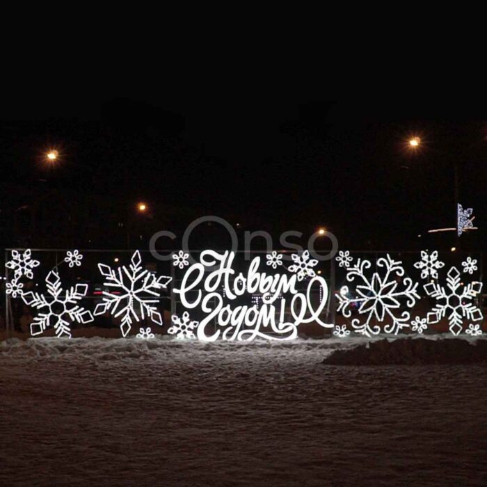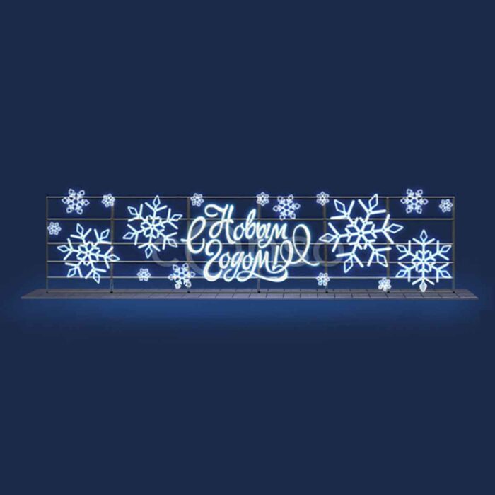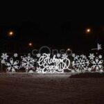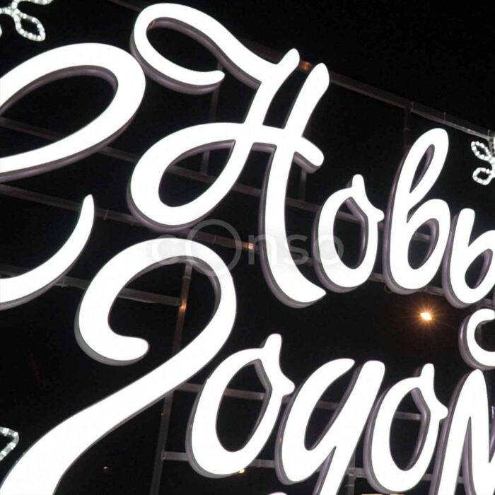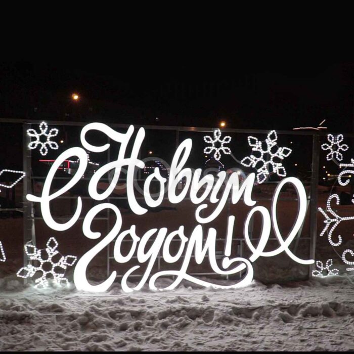 Объёмная светодиодная надпись «С Новым годом» — готовая фотозона для улиц, ТЦ, парков и площадей. Длина 11,5 м, холодное свечение, алюминиевый каркас, степень защиты IP65. Устойчива, легко монтируется, не требует дополнительного фундамента. Отлично работает в любую погоду. Доставим и установим под ключ.