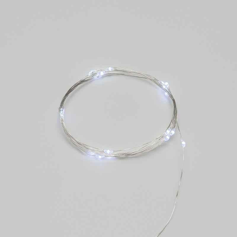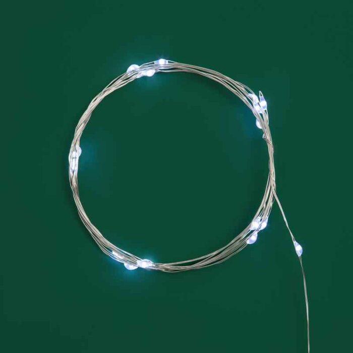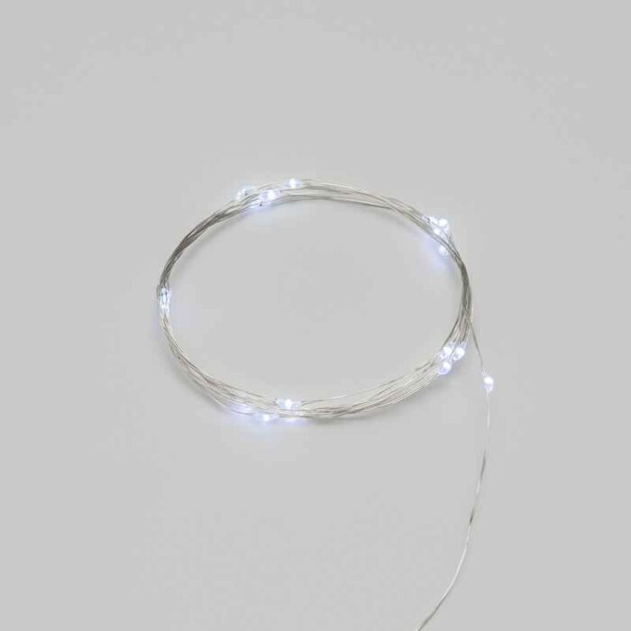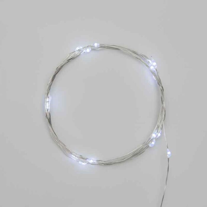 Металлический серебристый провод не только прочный, но и тонкий, поэтому он не отвлекает внимание от свечения. Такой провод идеально подходит для светлых интерьерных композиций, стеклянных и прозрачных ёмкостей, где важна аккуратность и невидимость монтажа.