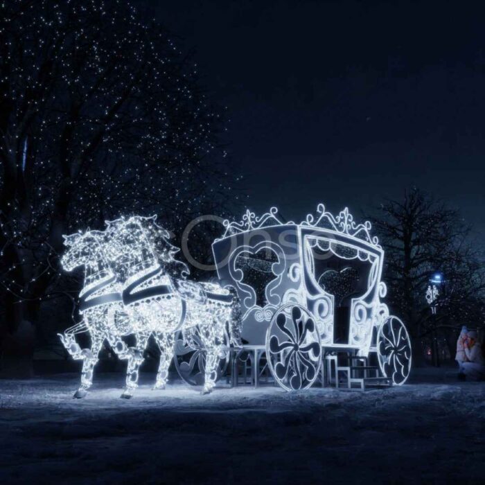 Новогодняя фотозона «Карета с лошадьми» — 3D световая фигура