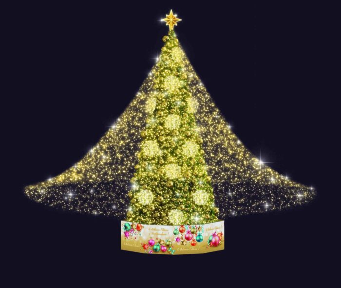 Световой шатёр высотой 18 метров — это не просто элемент декора, а знаковая архитектурная композиция, способная преобразить любую городскую площадь, превратить территорию перед ТЦ или административным зданием в пространство притяжения, уюта и световой сказки. С такой фигурой невозможно остаться незамеченным: она становится точкой фокусировки внимания и визуальным сердцем мероприятия.