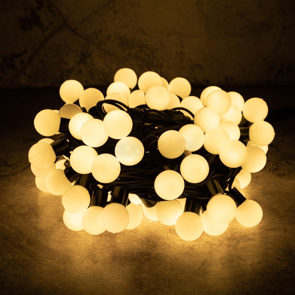 Гирлянда Нить 10 м Тепло-Белая Статика, 100 LED, Черный Каучук, IP44