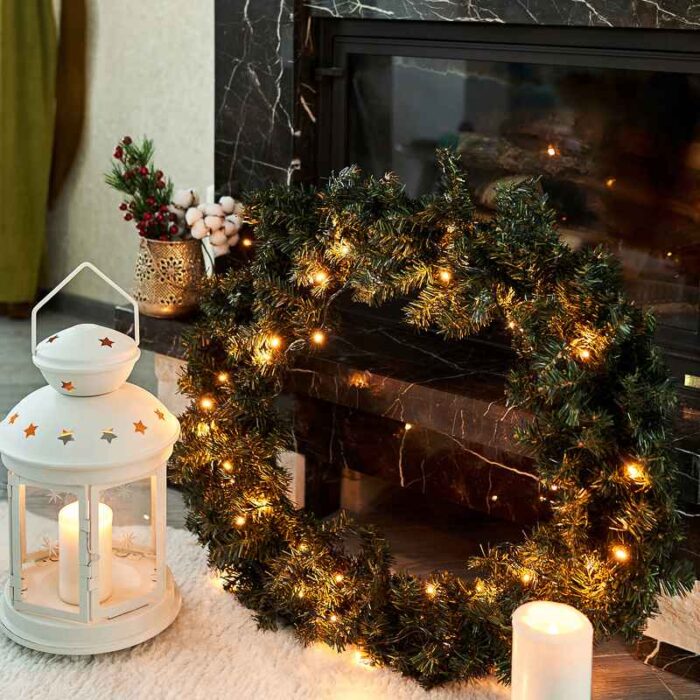 Она легко сочетается с другими тёплыми источниками света, свечами, сканди- или классическим стилем.
