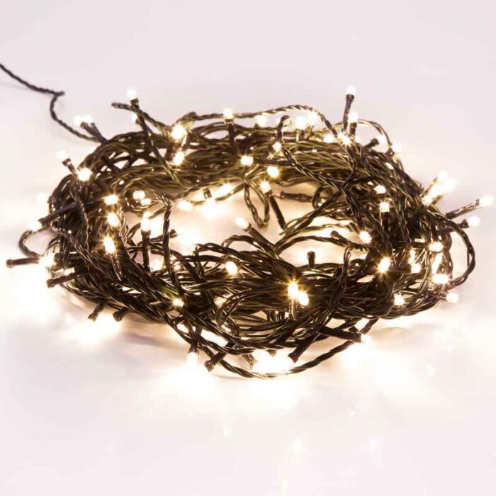 Гирлянда Нить 20 м Тепло-Белая с Динамикой, 230 В, 200 LED, Провод Тёмно-Зелёный ПВХ, IP20