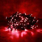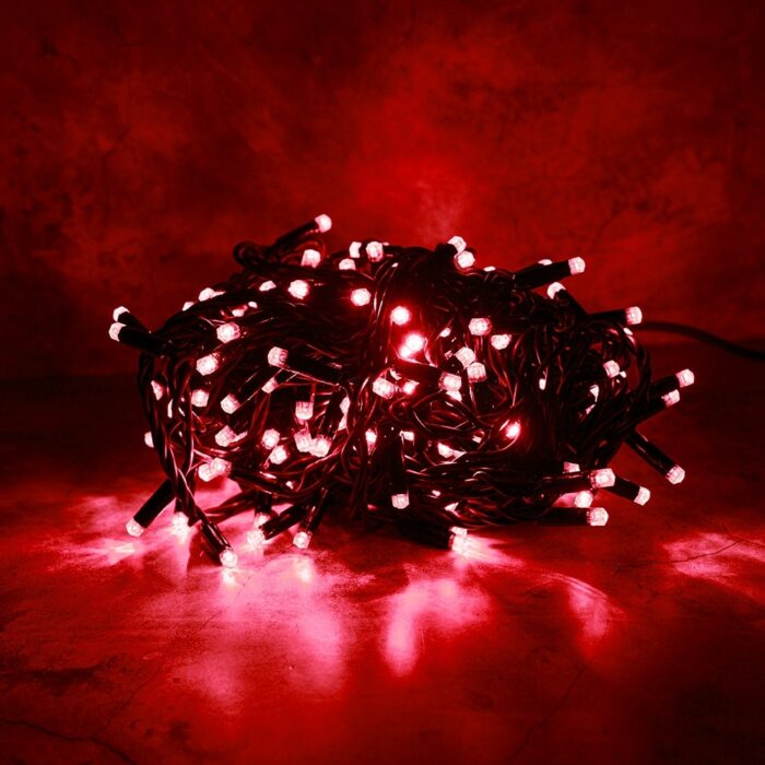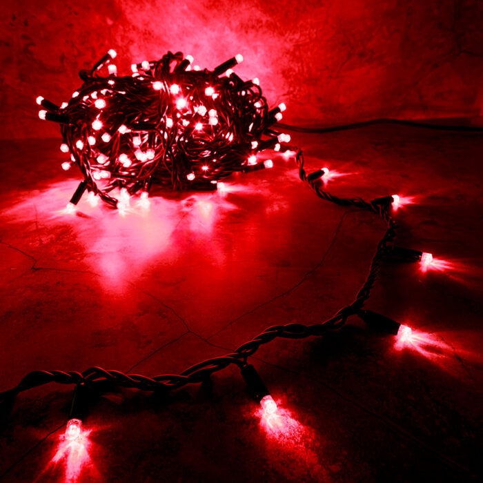 Надёжная уличная гирлянда на чёрном каучуке с ярким красным свечением. Подходит для подсветки деревьев, фасадов, заборов. Работает от сети, защищена по стандарту IP65. Простая установка, стабильно горит при любой погоде.