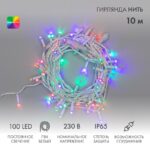Гирлянда Нить 10 м Мультиколор Статика, 100 LED, Белый ПВХ, IP65, NN