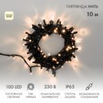 Гирлянда Нить 10 м Тепло-Белая Статика, 100 LED, Чёрный ПВХ, IP65, NN