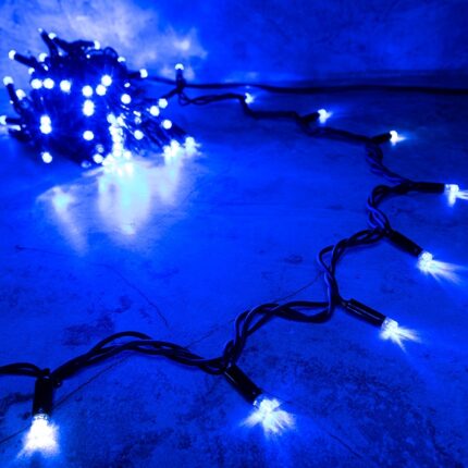 Эффектная синяя гирлянда длиной 10 метров — надёжное решение для украшения деревьев, фасадов, заборов и улиц. Яркий цвет, мягкое мерцание и устойчивость к погоде. Надёжный чёрный каучуковый провод, защита IP65, профессиональный монтаж — всё, как надо.