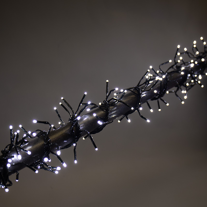 Эта кластерная гирлянда длиной 3 метра — не просто про свет. Это про эффект. 288 светодиодов, равномерно распределённых по всей длине, дают максимальную яркость даже в небольшой комнате. Свет — белый, холодный, чёткий. Он подчёркивает формы и создаёт ощущение новогодней сказки.