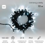 Гирлянда Нить 10 м Белая с Мерцанием, 100 LED, Чёрный ПВХ, IP65, 24 В