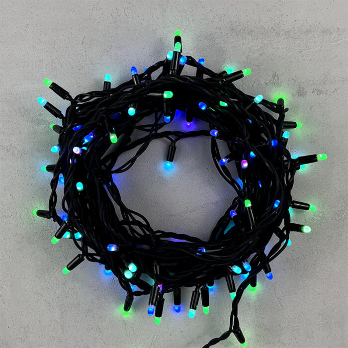Гирлянда Нить с Колпачком 15 м RGB, 100 LED, 8 режимов, Чёрный Каучук, IP65, LTC