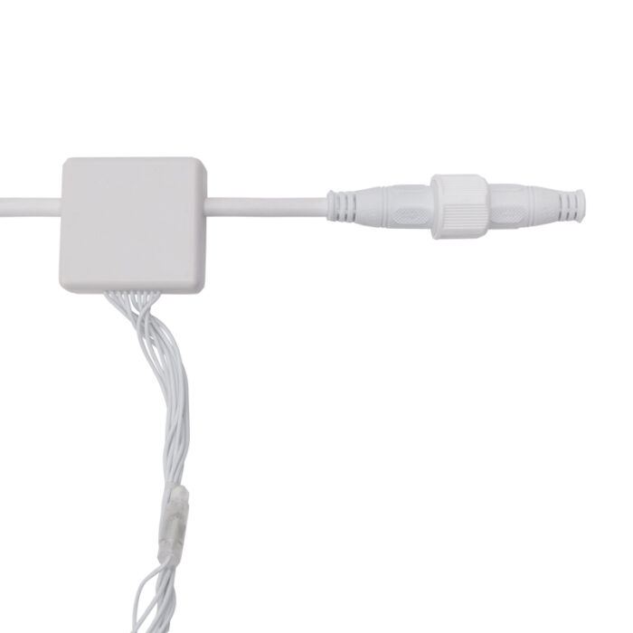 Гирлянда рассчитана на работу в температурном диапазоне от -25°C до +40°C. Провод из прочного ПВХ защищён от ультрафиолета и влаги. Рабочее напряжение 24В обеспечивает дополнительную безопасность при уличном монтаже. Возможность соединения трёх гирлянд подряд позволяет покрыть большую площадь без потери качества свечения.