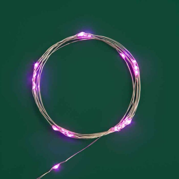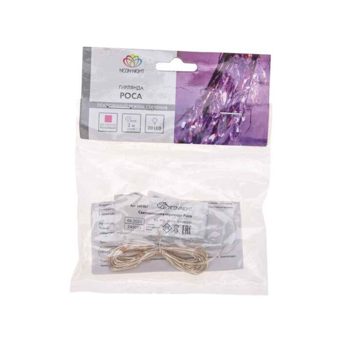 Компактная и изящная гирлянда «Роса» длиной 2 м с нежным розовым свечением создаст атмосферу уюта и романтики. Тонкий серебристый провод почти незаметен, а питание от батареек позволяет разместить гирлянду где угодно.