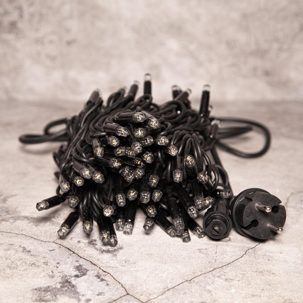 Гирлянда Нить 10 м Тепло-Белая Статика, 220 В, 100 LED, Чёрный Каучук, IP65, LEON