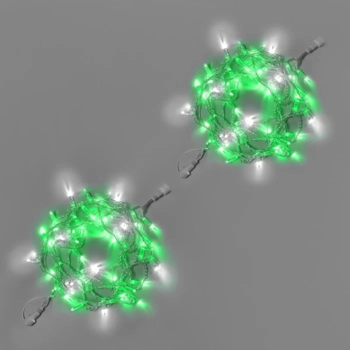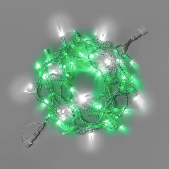 Гирлянда 10 м с насыщенным зелёным свечением и лёгким мерцанием. 100 LED, прозрачный ПВХ, IP65. Идеальна для деревьев, елей и заборов. Соединяется до 100 м.