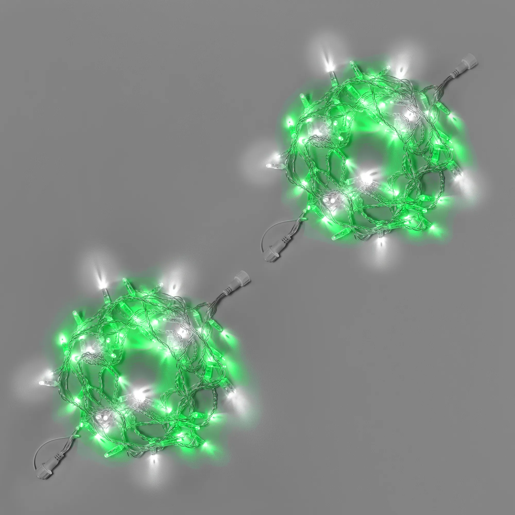 Конструкция делится на два участка по 5 метров — удобно для размещения вдоль углов, перил, окон, деревьев или фасадов. Всего в гирлянде 100 диодов — хорошая плотность для равномерного свечения.