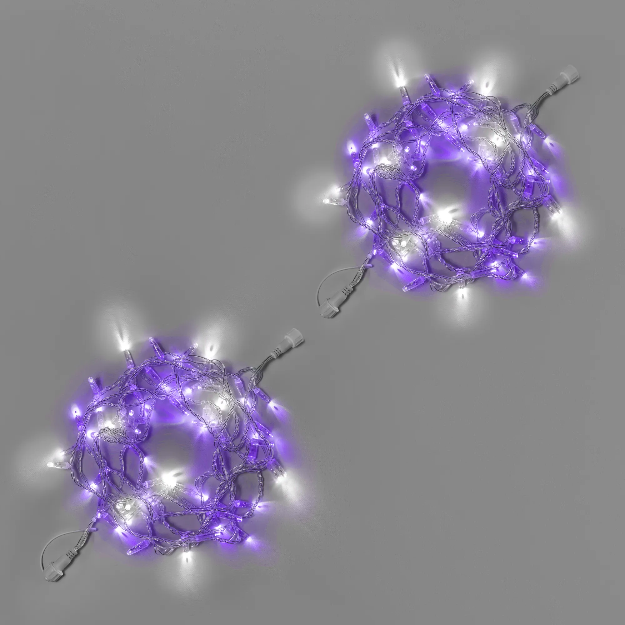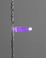 Гирлянда 10 м с фиолетовым свечением и эффектом мерцания. 100 LED, прозрачный ПВХ, IP65. Подходит для улицы, деревьев, ёлок и фасадов. Соединяется в линию до 100 м.