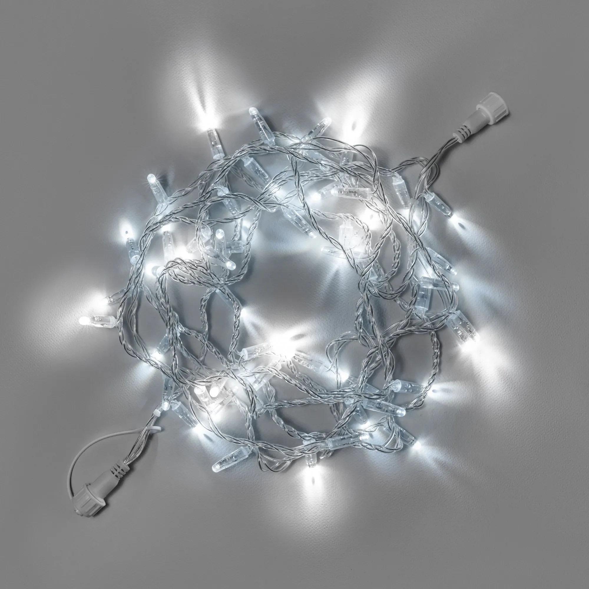 Можно соединить до 10 гирлянд подряд — до 100 м от одного питания. Все соединения — герметичные.