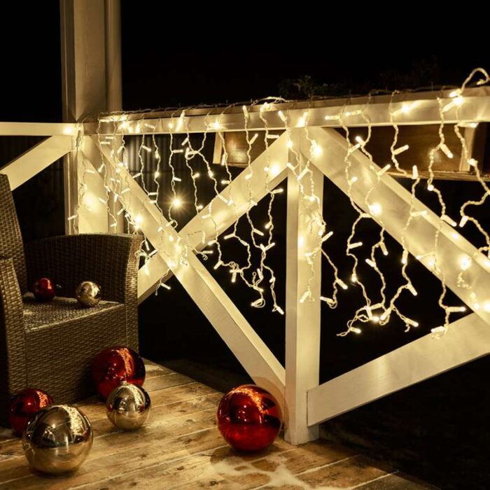 Гирлянда Занавес 2×0.8 м Тепло-Белый с Мерцанием, 160 LED, IP65, прозрачный провод