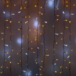 Жёлтый мерцающий занавес хорошо сочетается с другими цветами и форматами гирлянд: