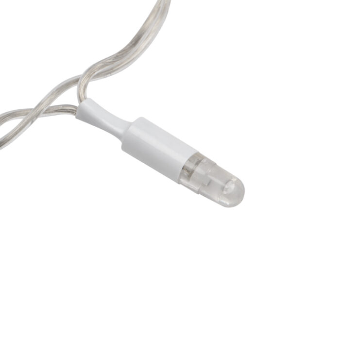Гирлянда комплектуется кабелем питания длиной 1,5 м. Благодаря возможности соединения до 10 изделий в одну цепь можно создавать длинные световые полотна или комбинировать их для сложных инсталляций. Монтаж выполняется при помощи пластиковых стяжек, кронштейнов или клипс — как на улице, так и в помещении.