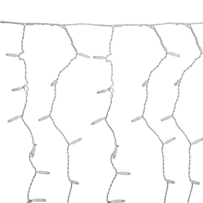 Горизонтальный провод длиной 2 м поддерживает 20 вертикальных нитей высотой 1,5 м, равномерно усыпанных светодиодами. Прозрачный ПВХ-провод остаётся практически незаметным на светлых и стеклянных поверхностях, позволяя сосредоточить внимание на самом свете.