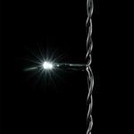 Особенность этой модели — чёрный провод. Он идеально подходит для монтажа на тёмных фасадах, заборах, металлических конструкциях или деревьях. Днём провод остаётся почти незаметным, а вечером внимание полностью переключается на ровное белое свечение. Это решение особенно востребовано в коммерческих проектах, где важна эстетика даже при отключённой подсветке.