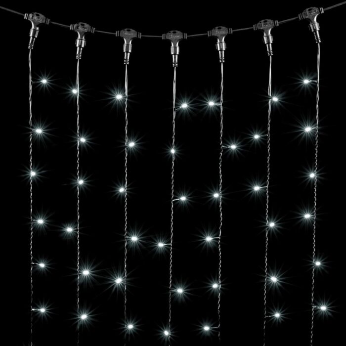 Белая гирлянда-занавес 2×1 м с 200 светодиодами — стильное решение для подсветки фасадов, окон и заборов. Чёрный провод делает её незаметной на тёмных поверхностях, а яркое белое свечение подчёркивает архитектуру и создаёт праздничную атмосферу. Гирлянда подходит для улицы, защищена по стандарту IP54 и выдерживает морозы до –30 °С. Можно соединять до 10 изделий подряд.