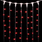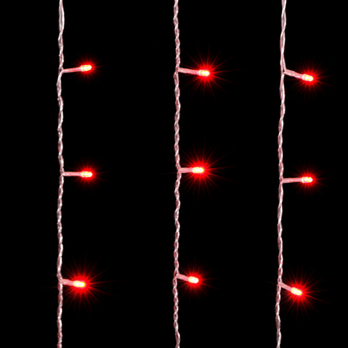 Гирлянда Занавес 2×2 м Красный с Мерцанием, 400 LED, IP54, прозрачный ПВХ