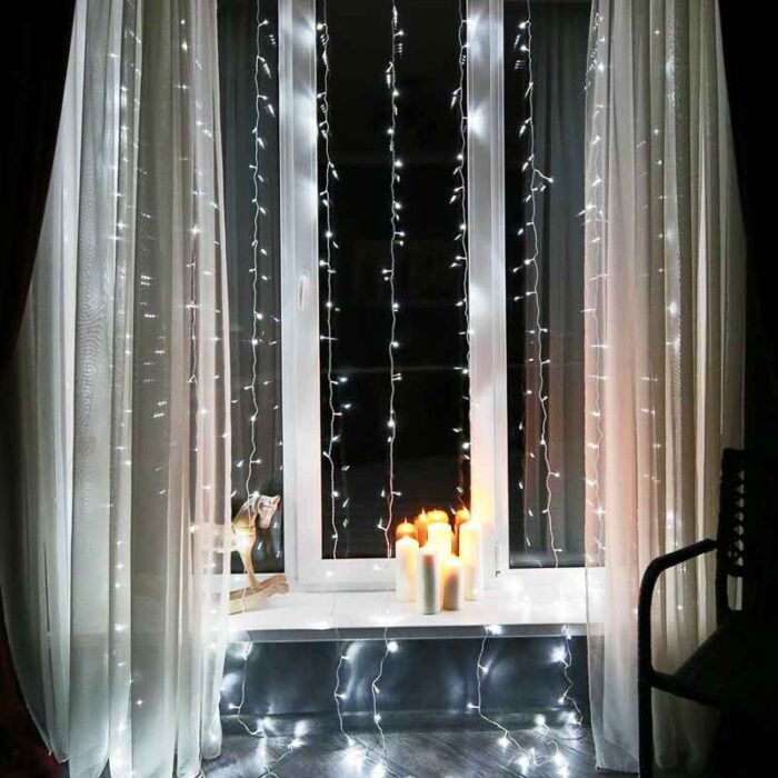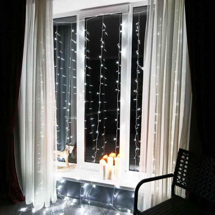Гирлянда-занавес 2×3 м с белым свечением — это практичное и универсальное решение для декора. 240 LED, 8 режимов динамики, прозрачный провод и срок службы до 30 000 часов делают её отличным выбором для дома, офиса и бизнеса.