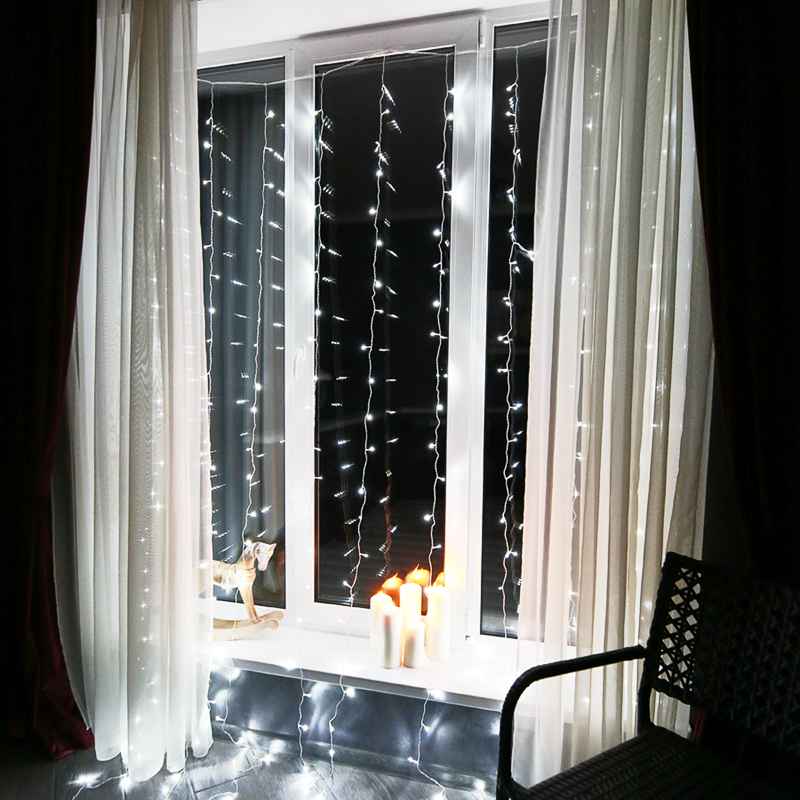 Гирлянда-занавес 2×3 м с белым свечением создаёт стильный и торжественный акцент в интерьере. 240 LED работают в 8 динамических режимах, позволяя подобрать эффект под любое событие. Прозрачный провод остаётся незаметным, а срок службы до 30 000 часов обеспечивает долговечность. Отличный выбор для фотозон, витрин, залов и новогоднего декора.