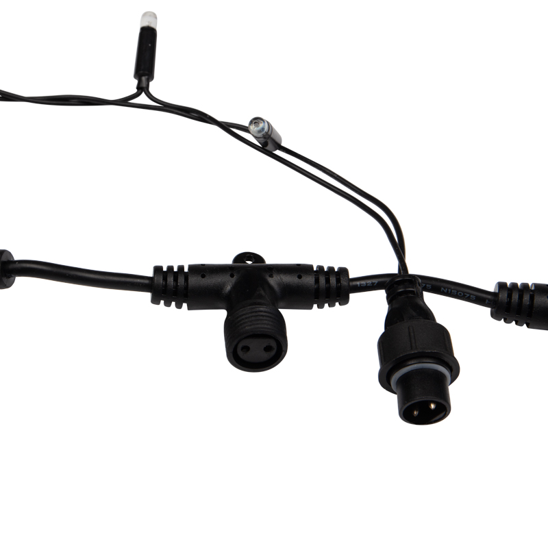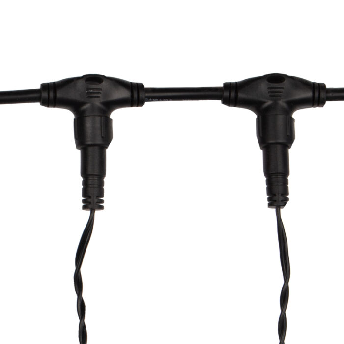 Благодаря чёрному ПВХ-проводу гирлянда органично сливается с фоном тёмных фасадов, заборов или деревьев, делая акцент именно на свете, а не на проводке. Это особенно важно для уличных композиций, где днём гирлянда должна оставаться практически незаметной.