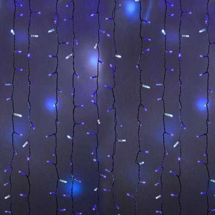 Гирлянда-занавес 2×3 м с синим свечением и эффектом мерцания — это сочетание стиля, выразительности и надёжности. Она подчёркивает атмосферу зимних праздников, подходит для масштабных и локальных объектов, устойчива к морозу и влаге, а также проста в монтаже.