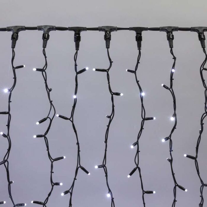 Профессиональная гирлянда-занавес 2×3 м с 760 белыми светодиодами на прочном чёрном каучуковом проводе. Класс защиты IP67 гарантирует работу в любых погодных условиях. Подходит для фасадов, колонн, заборов, деревьев, а также интерьеров. В комплекте кабель питания 1,5 м. Возможность соединения до 4 гирлянд в одну цепь для масштабного декора. Рабочий диапазон температур — от -50 до +40 °C.