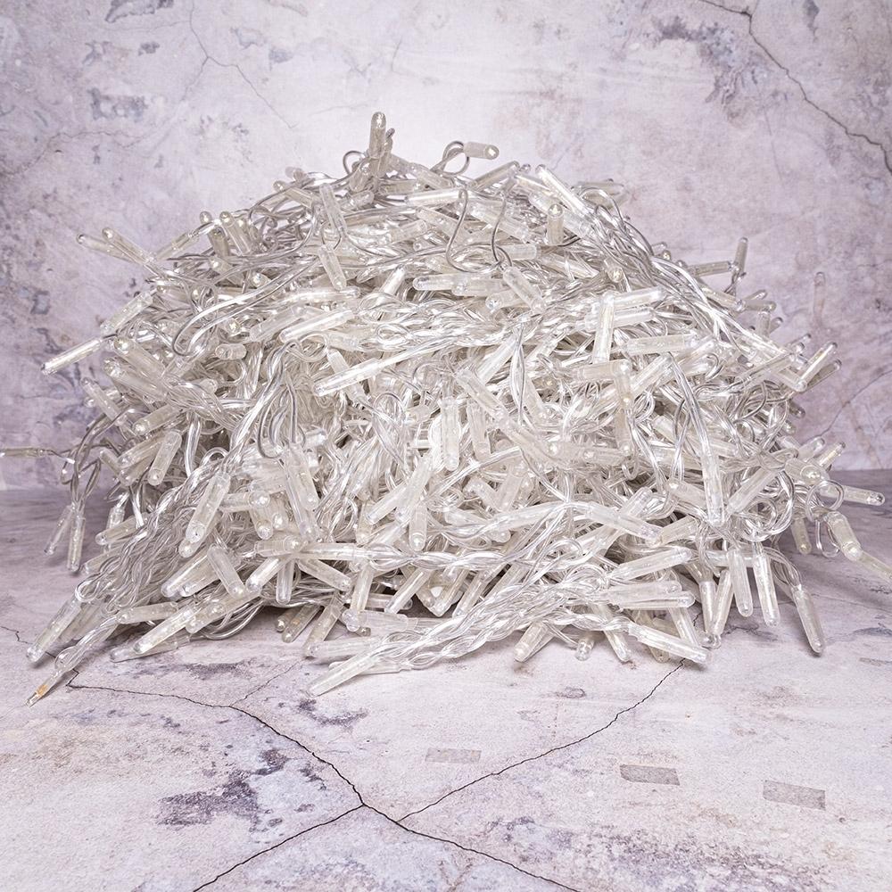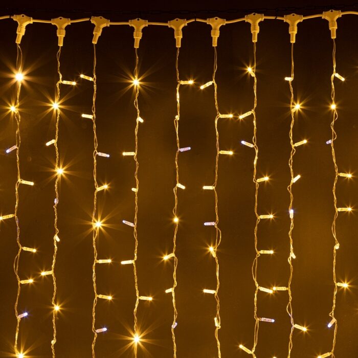 Гирлянда Занавес 2×6 м Тёплый Белый с Мерцанием 220В, 1200 LED, Провод Прозрачный ПВХ, IP65
