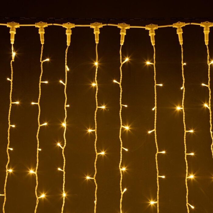 Гирлянда-занавес 2×9 м с тёплым белым свечением — это готовое решение для масштабного и эффектного оформления. Она создаёт ровную световую стену, которая придаёт пространству атмосферу уюта и праздника. Такой тип декора подходит как для фасадов и заборов частных домов, так и для коммерческих объектов — кафе, ресторанов, гостиниц, магазинов и праздничных площадок.